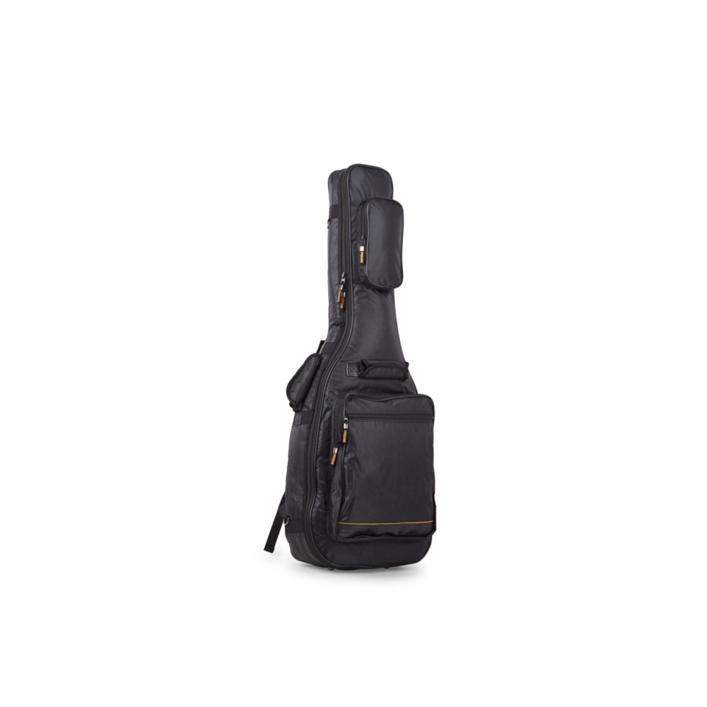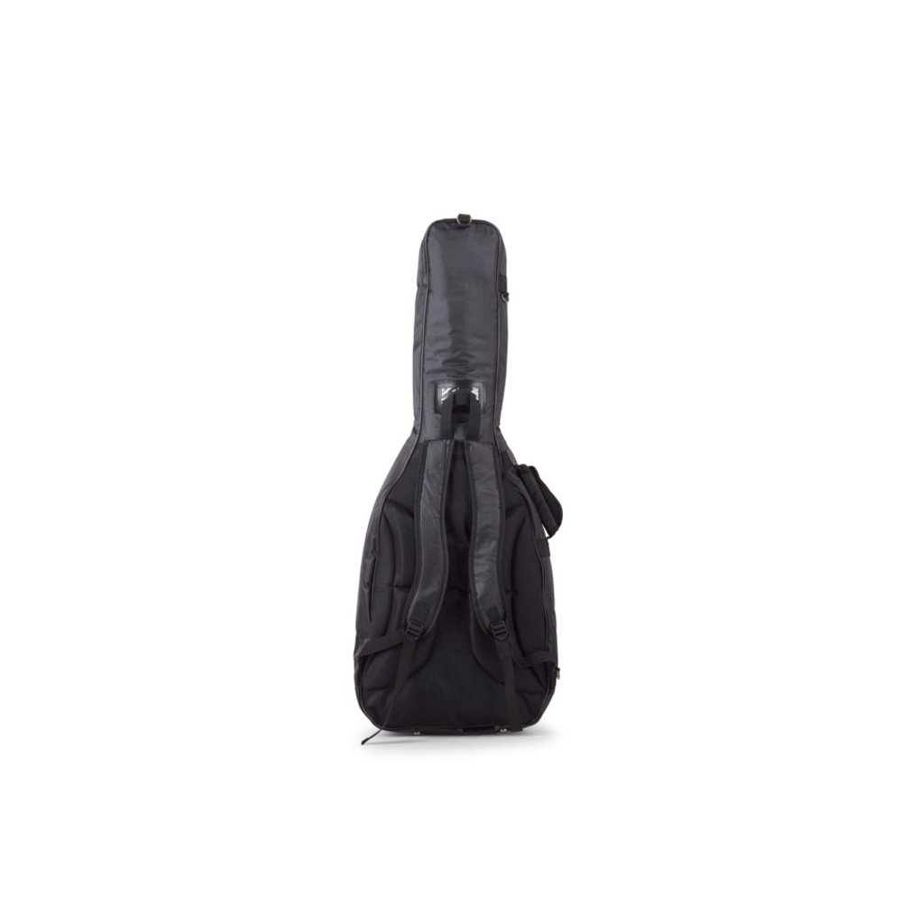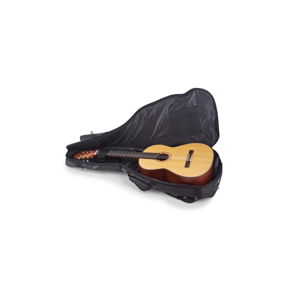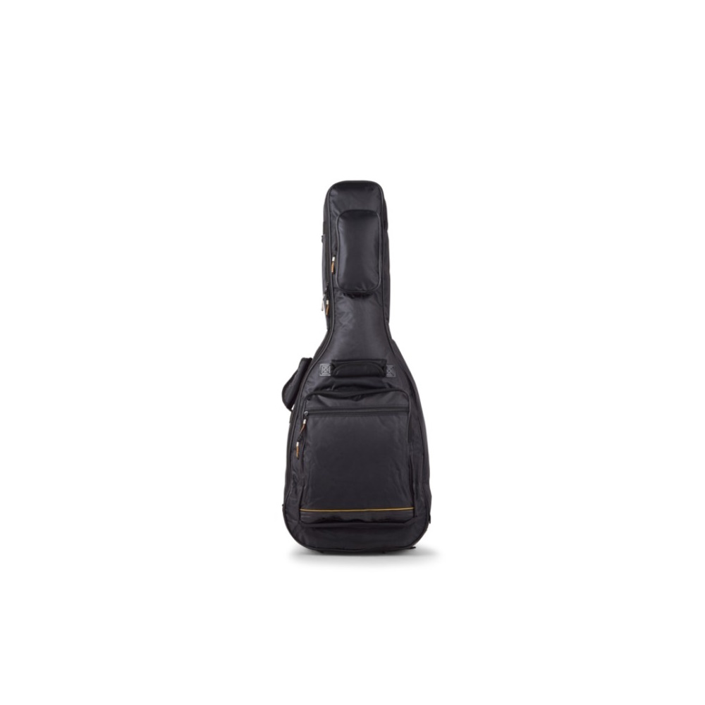 RB 20508 B – Borsa imbottita per chitarra classica 4/4 – Serie Deluxe – Realizzata in robusto tessuto RokTex resistente all’acqua – Imbottitura da 20mm – Zip a 2 vie larga 0,8cm con cerniera in nylon – Fodera interna in nylon nero – Equipaggiata con Guitar-Saving-System (cuscino extra protettivo in corrispondenza dello strap-lock) e Neck-Saving-System (cuscino extra protettivo e laccio di sicurezza con velcro per il fissaggio del manico) per la massima protezione – Toppe protettive RokTex in corrispondenza delle meccaniche e del ponte – Ampia tasca anteriore con cerniera e 2 scomparti (in grado di alloggiare il supporto per chitarra RockStand Worwei) – Tasca esterna con cerniera in corrispondenza della paletta – Tre maniglie per il trasporto imbottite (sul lato, sulla parte anteriore e su quella posteriore) – 2 spallacci da 50mm di larghezza per il trasporto a spalle, imbottiti e regolabili con hardware in metallo – Parte posteriore ergonomica e imbottita – Tracolla aggiuntiva rimovibile, regolabile e imbottita con hardware in metallo – Anello di metallo per appendere la borsa – Fondo rinforzato in PVC con piedini in metallo – Colore: nero – Altezza interna: 104,0cm – Larghezza interna: 40,0cm – Profondità interna: 10,0cm – Lunghezza massima del corpo: 51,0cm – Peso: 1,8kg.
