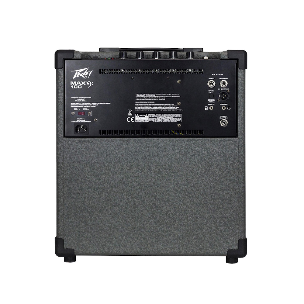 MAX 100 (EU) – 100W combo 10″ – Amplificatore combo per basso 100W RMS transistor con accordatore cromatico integrato – Serie MAX – Dotato delle esclusive tecnologie brevettate Peavey TransTube gain boost (emula la circuitazione valvolare), Peavey Psyco-Acoustic (aggiunge basse frequenze senza chiedere ulteriori sforzi agli altoparlanti) e Peavey DDT speaker protection – Coni: 1×10” Premium Peavey – Ingressi: 1x Strumento Passivo (Jack 1/4”) + 1x Strumento Passivo (Jack 1/4”) + 1x Aux/Line/Phone (Jack 1/8”) + 1x Footswitch – Fx Loop: 1x Send/Return – Controlli: Gain + Overdrive On/Off + Bass + Contour On/Off + Middle + Mid Shift On/Off + Treble + Bright On/Off + Volume + Kosmos-C On/Off + Chromatic Tuner On/Mute + Ground/Lift – Uscite: 1x DI (Xlr) + 1x Cuffie (Jack 1/8″) – Dimensioni: 52,0×41,0x38,0Cm – Peso: 12,0Kg.