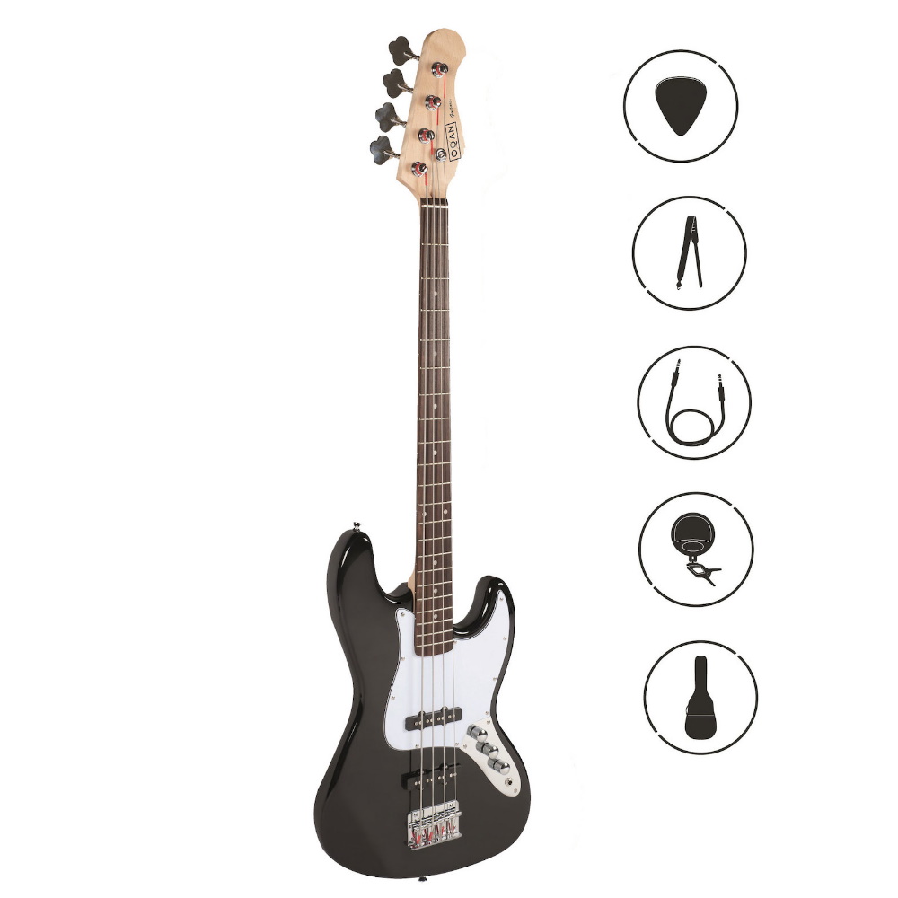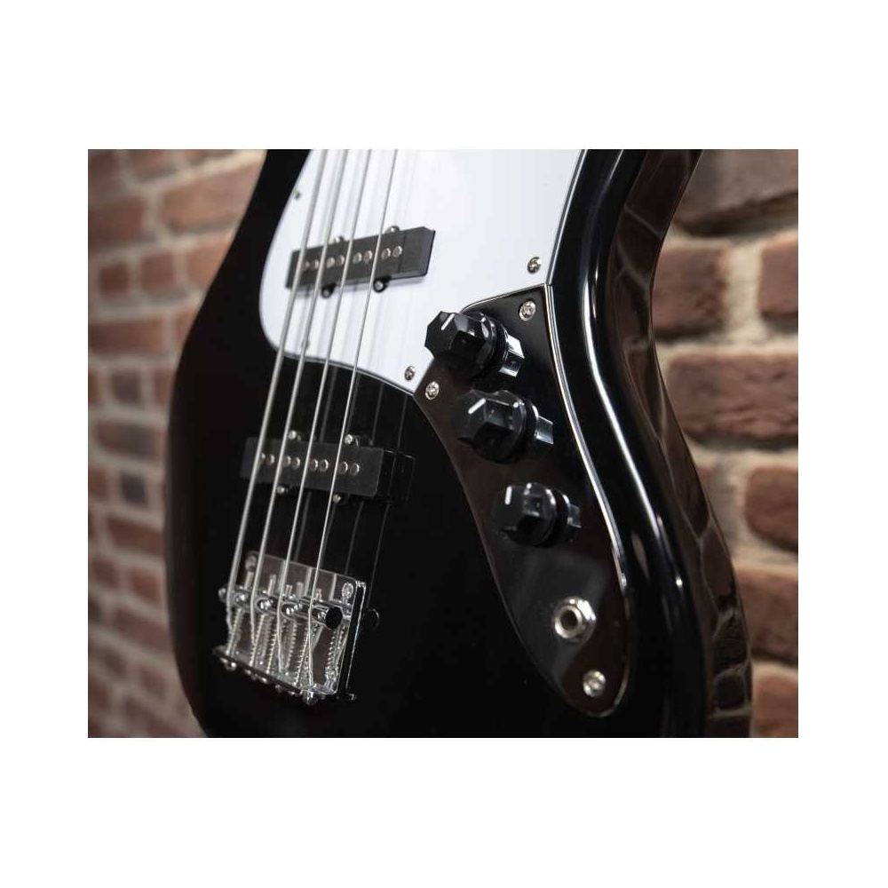 Basso con corpo in tiglio massello.Tastiera in acero 21 tasti. Manico in ‘compound rosewood’. 2 pickup tipo JB.Ponte Vintage. 1 controllo volume, 2 controllo tono. Paletta tipo vintage. Accessori inclusi: custodia, accordatore digitale, cavo, cinghia e 3 plettri.