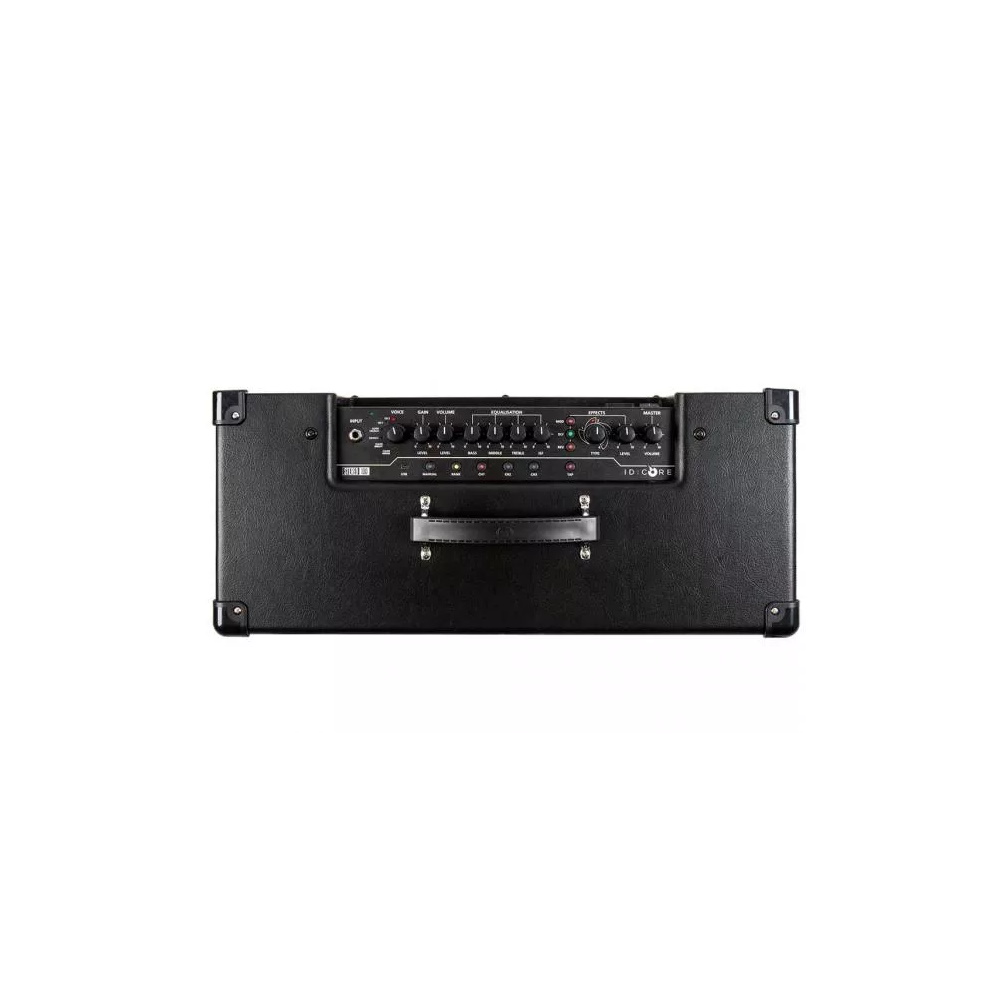Amplificatore digitale per chitarra elettrica ID:Core Stereo 100. 100 W di potenza. 6 canali (CleanWarm, Clean Bright, Crunch, Super Crunch, OD 1, OD 2). Funzione per salvare fino a 6 preimpostazioni. Tap tempo. Ingresso ausiliare per Cd o Mp3. 12 effetti incorporati. Interfaccia audio USB. Comandi (6 Voice Control, 12 Effects Control, Tap Tempo,USB Input, Gain, Volume, ISF, Effect Level, Looper, Octaver). Connessione USB per elaborazione tramite software Insider. Dimensioni: 573 x 447 x 241 mm. Peso: 12,5 Kg