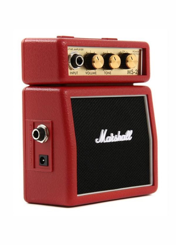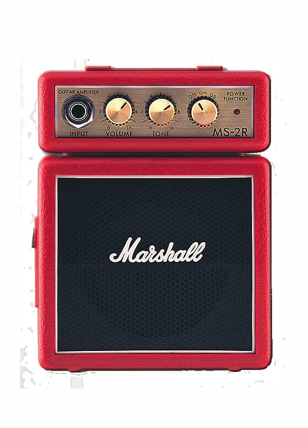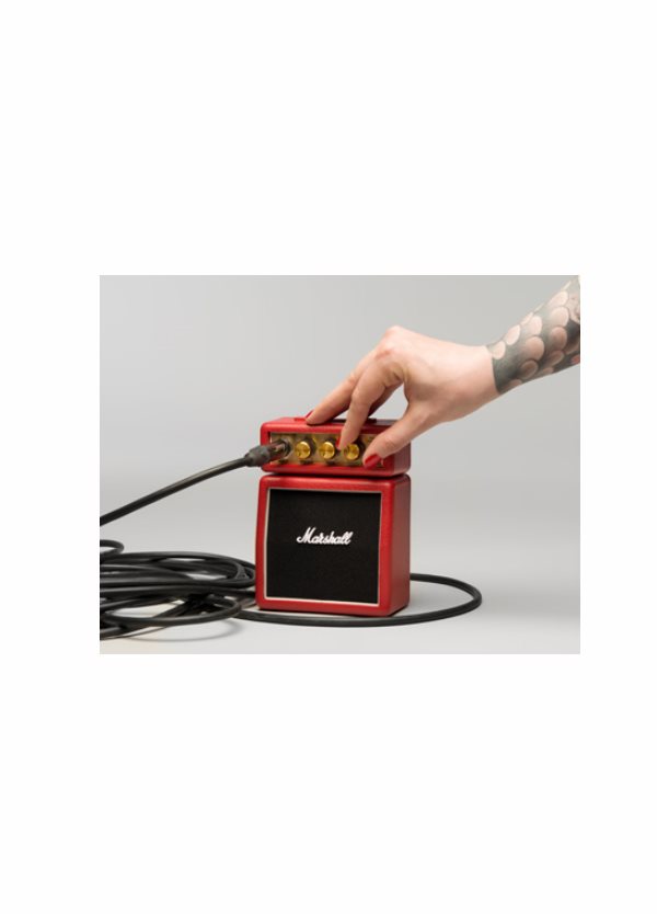 Amplificatore in miniatura, 1W,riproduzione di una Testata e cassa, alimentazione 9V (batteria/alimentatore), clip per aggancio cintura – Rosso