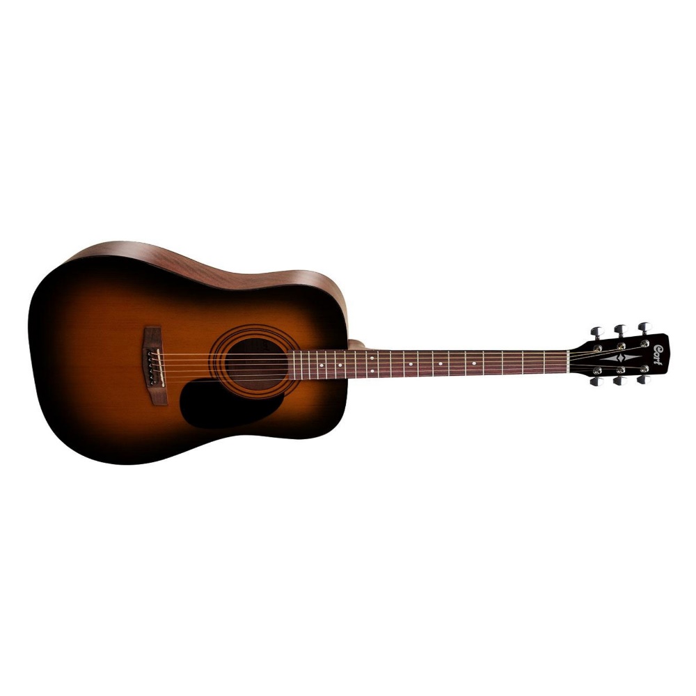 Chitarra Acustica Costruzione: Dovetail neck joint Scala: 25.3″ (643 mm) Cassa Armonica: Dreadnought Catenatura: Advanced X-Bracing Fondo e Fasce: Mogano Africano laminato (Okoume) Binding: Black Top: Abete laminato Manico: Mogano (Palaquium) Tastiera: Merbau Capotasto: 43 mm (1 11/16″) Inlay tastiera: Dot Meccaniche: Cort Ponte: Merbau Finitura: SSB – Satin Sunburst Custodia morbida Cort inclusa |