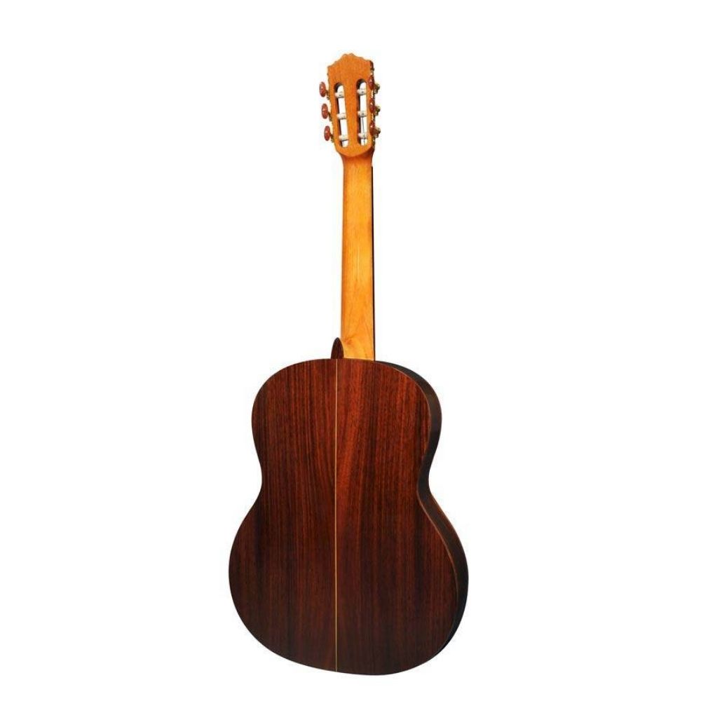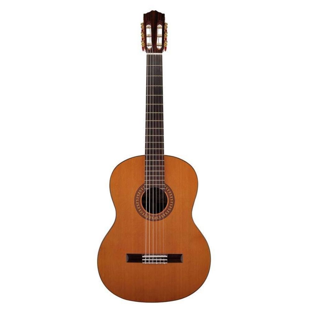 La CC-50 presenta una tavola armonica in cedro massello canadese, fondo e fasce in palissandro e un attacco del manico di tipo spagnolo che le conferiscono un suono caldo, definito, potente e ricco di dinamiche.