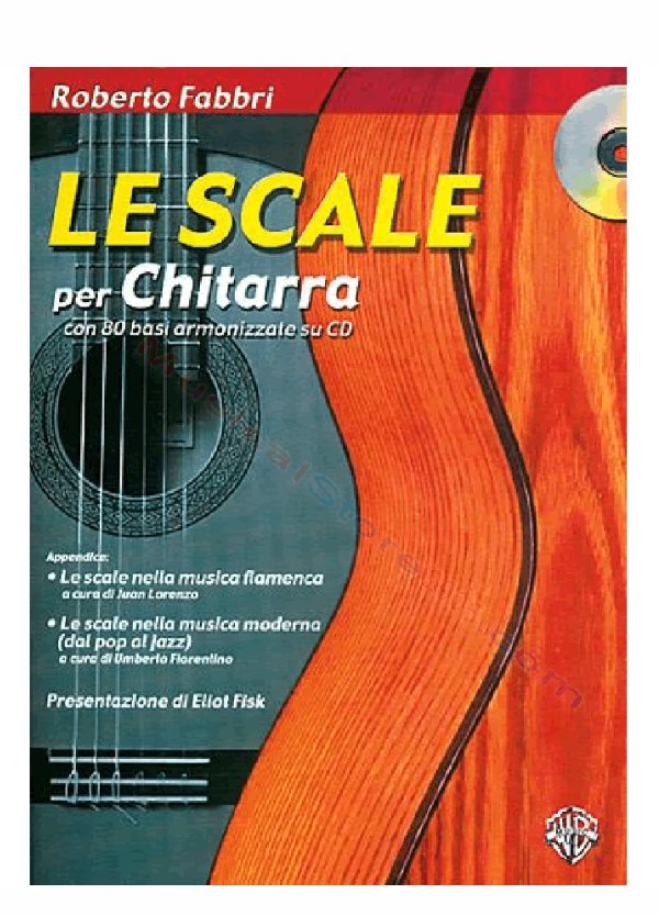 Con 80 basi armonizzate su CD. Il libro è articolato in vari capitoli: nel primo vengono presentate le scale maggiori, minori armoniche e melodiche ad un ottava in prima posizione; nel secondo le stesse sempre nelle prime posizioni ma a due ottave; nel terzo nella massima estensione consentita dallo strumento ed in altre posizioni e diteggiature (queste sono quelle che solitamente si portano all’esame di compimento inferiore di chitarra in conservatorio); nel quarto le scale doppie (terze, seste, ottave e decime) che esauriscono il ’classico’ del libro. Le scale dei primi due capitoli presentano anche le basi su cui suonarle, queste basi possono essere utilizzate in diversi modi, o suonandole come scritte, oppure effettuando delle varianti ritmiche (ad esempio ribattendo ogni quartine o duine) o eseguendo la scala per salti di terza (ad esempio do, mi, re, fa, mi, sol, fa, la, sol, la si, do etc.) e quant’altro la vostra inventiva vi suggerisce, utilizzando quindi la base come supporto.