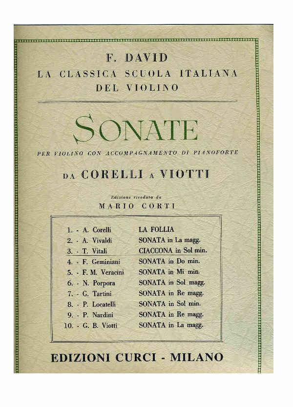 VITALI : CIACCONA IN SOL MINORE per violino e pianoforte CURCI EC6017