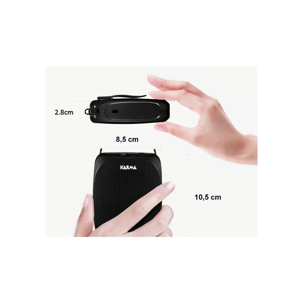Il Karma BM 539 è un amplificatore portatile con microfono ad archetto che combina compattezza e leggerezza con una potente capacità di amplificazione. Questo dispositivo può essere facilmente fissato alla cintura o indossato con la cinghietta inclusa, rendendolo perfetto per chi è sempre in movimento. È dotato di una batteria ricaricabile che garantisce fino a 5 ore di autonomia. Basta collegare il microfono ad archetto nell’apposita presa per renderlo immediatamente operativo. Dispone inoltre di un comando per il volume e di un lettore USB/microSD per la riproduzione di file Mp3. Ideale per insegnanti, allenatori, guide turistiche, conferenze e per chiunque abbia bisogno di un metodo efficace e discreto per amplificare la propria voce. La ricarica avviene tramite USB, con cavo incluso.