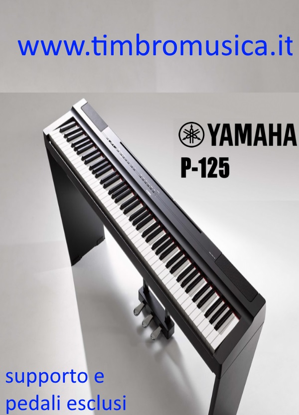 Yamaha P-125 BK Stage piano, tastiera standard con martelletto a percussione a 88 tasti (GHS); Pure CF Sound Engine, 24 toni; max. polifonia: 192 voci; funzione dual, split e duo; registrazione a due tracce (una canzone); 20 ritmi (batteria + basso); Intelligent Acoustic Control; 21 brani dimostrativi e 50 brani per pianoforte; effetti integrati: Reverb, Damper Resonance, Sound Boost, EQ; USB-to-host per la connessione a computer o dispositivi iOS; metronomo incorporato; tempo / trasposizione e sintonizzazione regolabili; altoparlanti integrati 2x 7 watt; uscita linea jack stereo 6,3 mm (L / R), uscita cuffie 2x 6,3 mm stereo, ingresso pedale sustain; incl. sostenere il pedale, il riposo musicale e l’alimentazione elettrica; dimensioni: 1326 x 166 x 295 mm (LxAxP), peso: 11,8 kg; colore: nero; App gratuita “Smart Pianist” per iPhone / iPad scaricabile (è richiesto un cavo di collegamento aggiuntivo, non incluso)